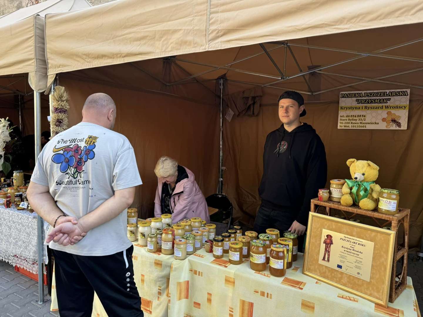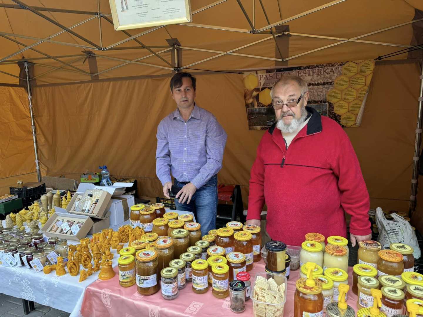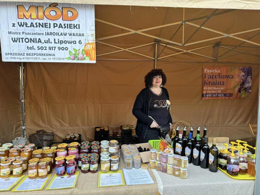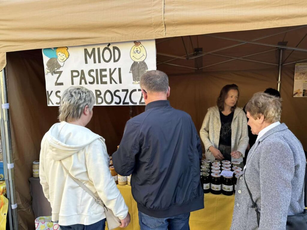 Na placu za kościołem można było kupić miody i inne produkty pszczele: miody pitne, pyłek, propolis czy pierzgę.