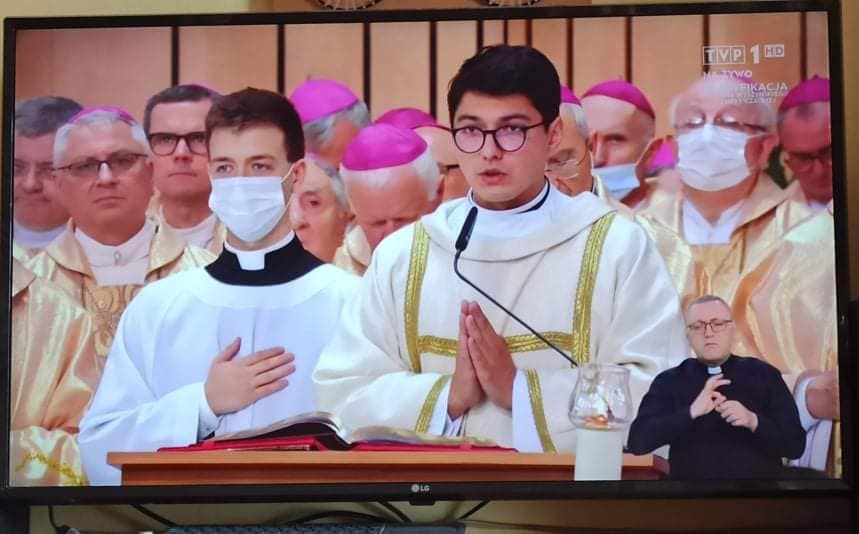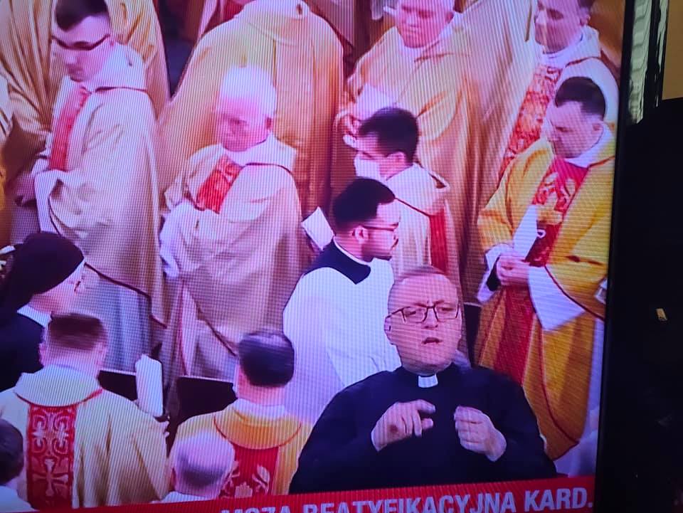Nasz Ksiądz Proboszcz i pan Michał byli tłumaczami na język migowy podczas transmisji uroczystości beatyfikacji Kardynała Stefana Wyszyńskiego i Matki Elżbiety Czackiej.