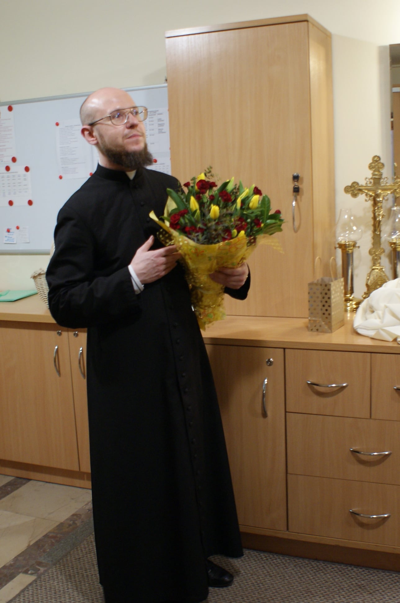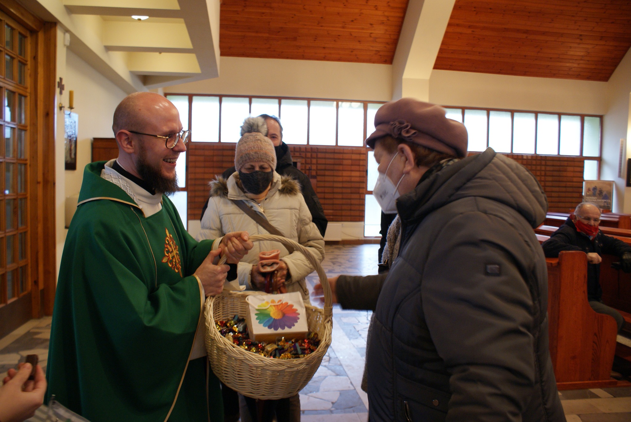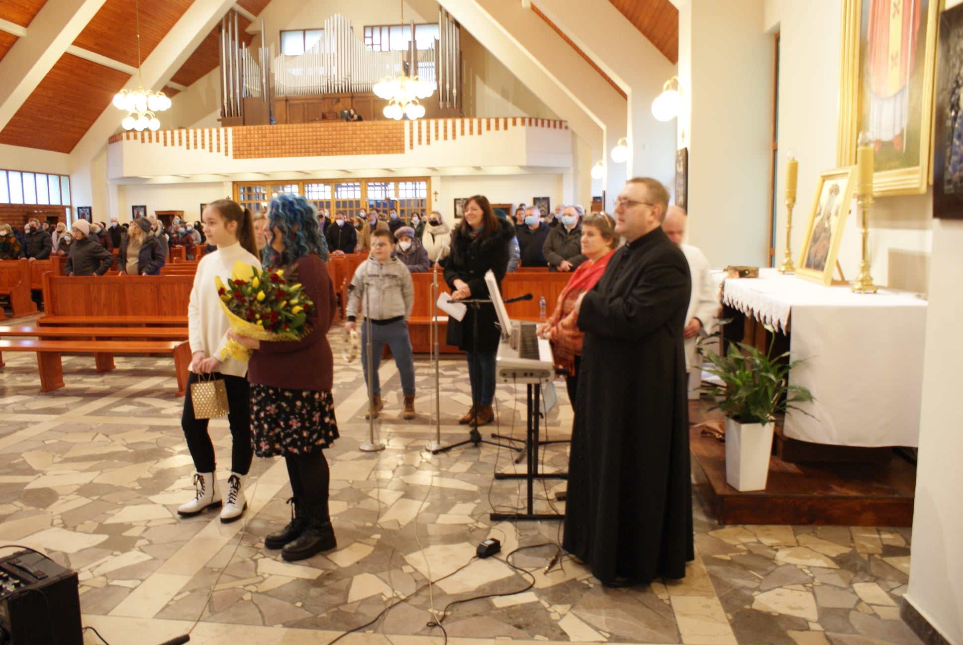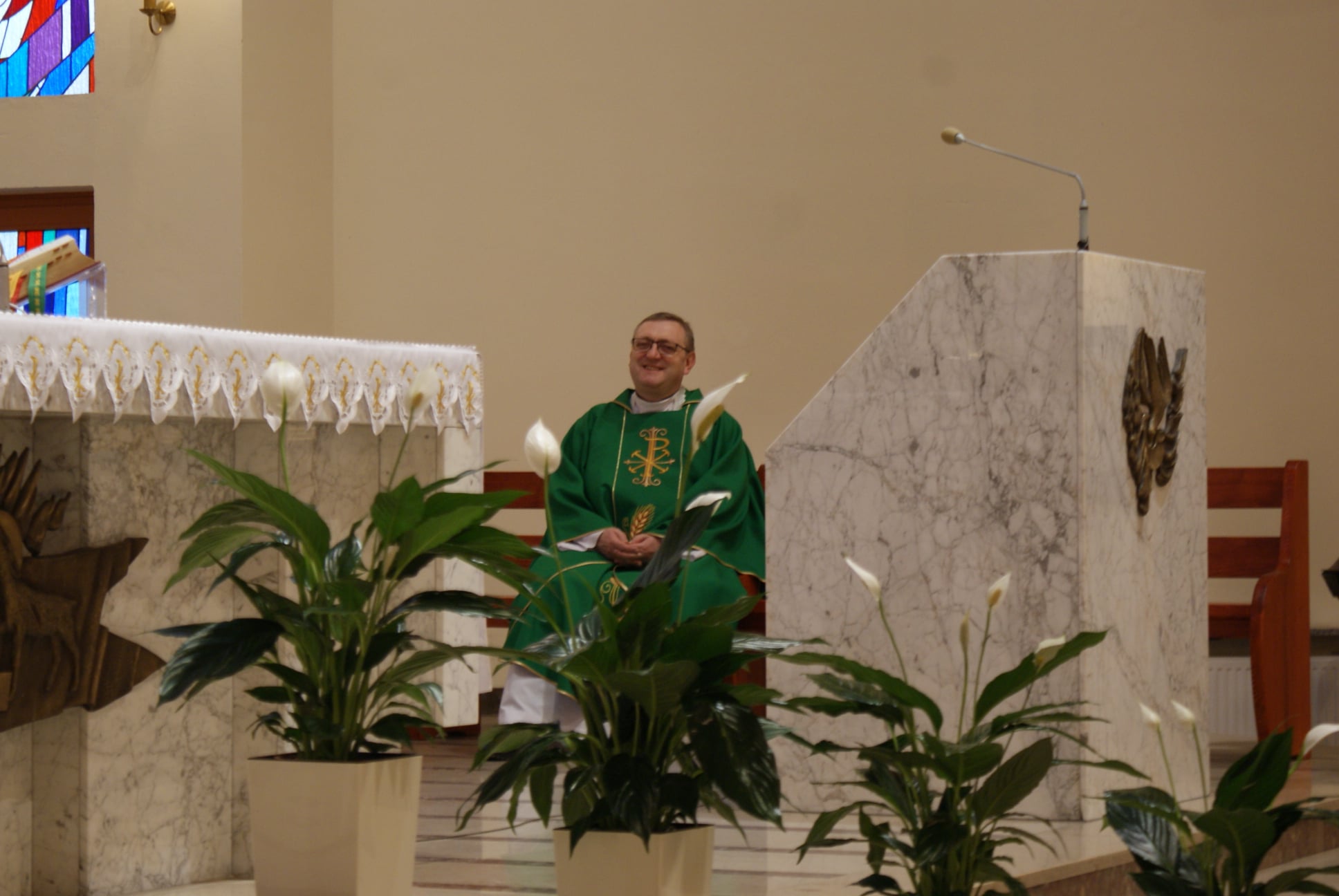 Ks. Damian Czerwiński w niedzielę obchodził imieniny, a w sobotę swoje 36. urodziny. Msza Św. z udziałem i przewodniczeniem Solenizanta i Jubilata została odprawiona wczoraj o godz. 10.00. Po komunii św. przyszedł tradycyjny moment życzeń. Życzenia i wyrazy wdzięczności skierował ks. Proboszcz oraz przedstawiciele grup parafialnych, ministranci i schola parafialna. W swoim słowie Solenizant podziękował serdecznie za miłe słowa i życzenia skierowane do niego osobiście, telefonicznie oraz przez FB. Po Mszy Św. Ksiądz Damian częstował zebranych wiernych pysznymi cukierkami.