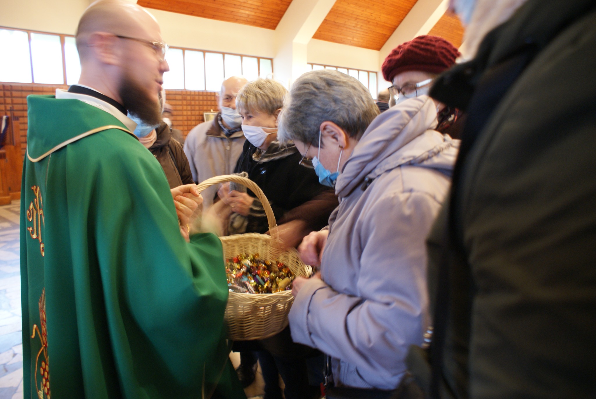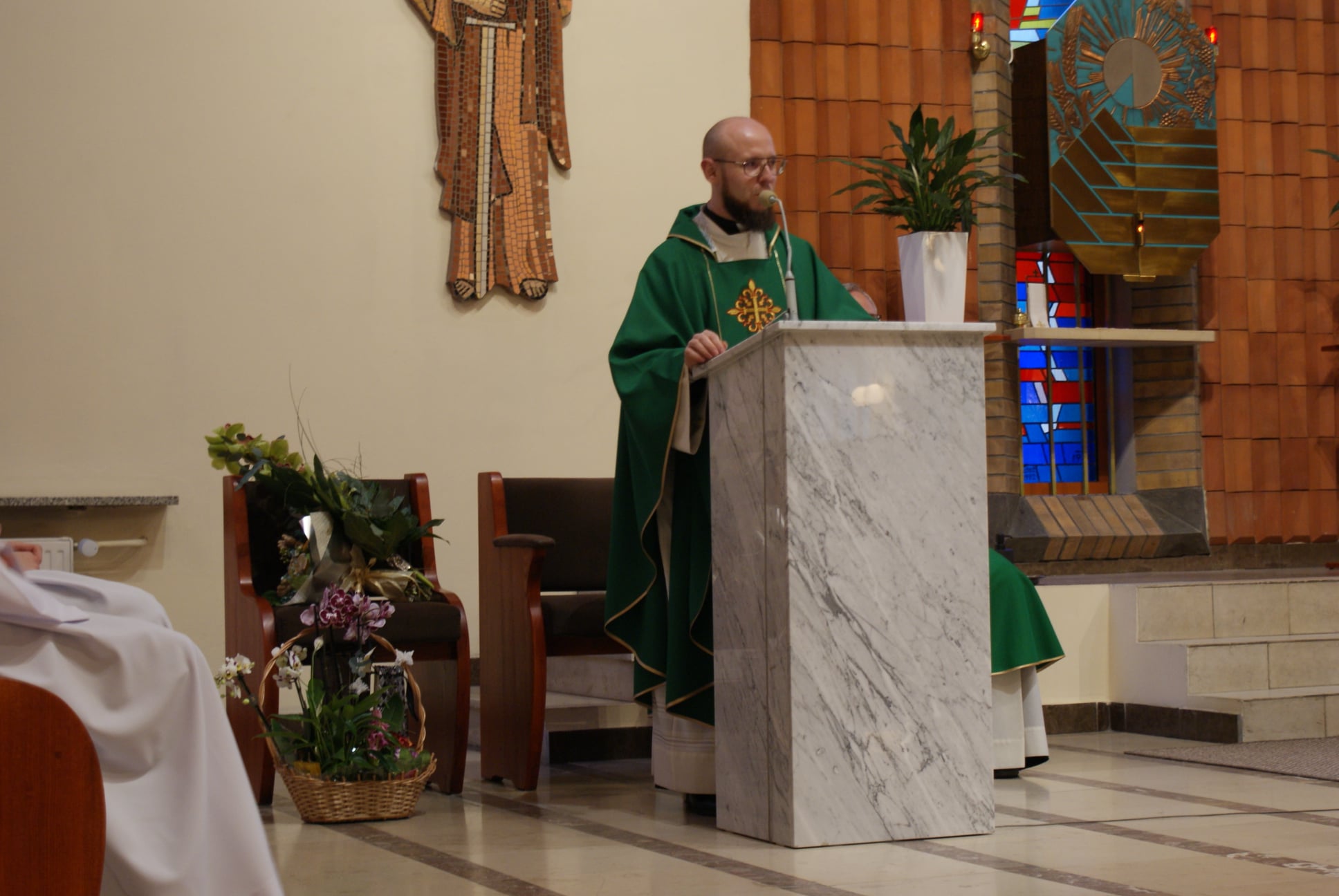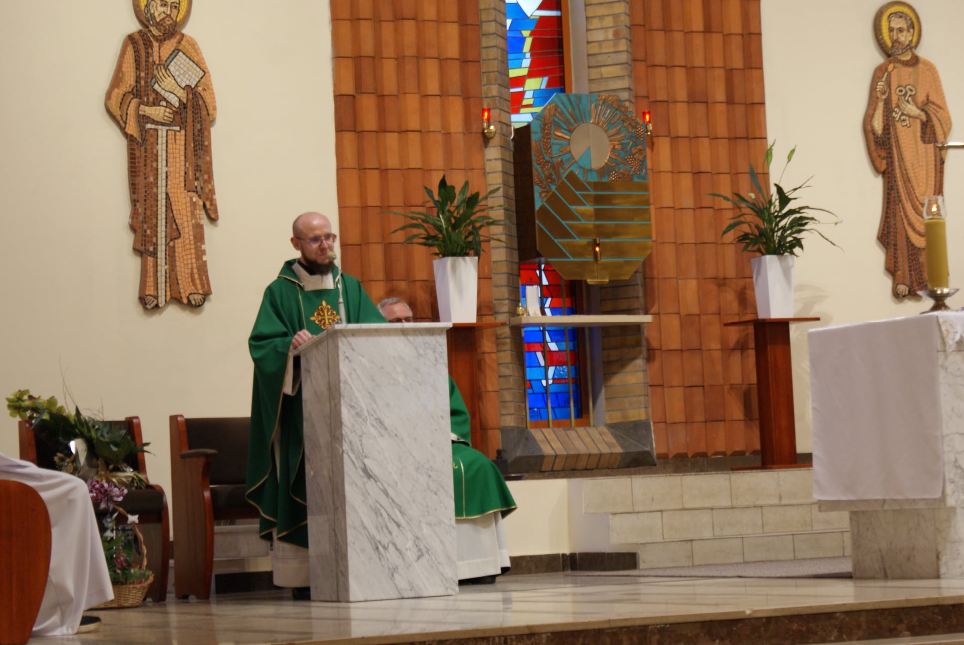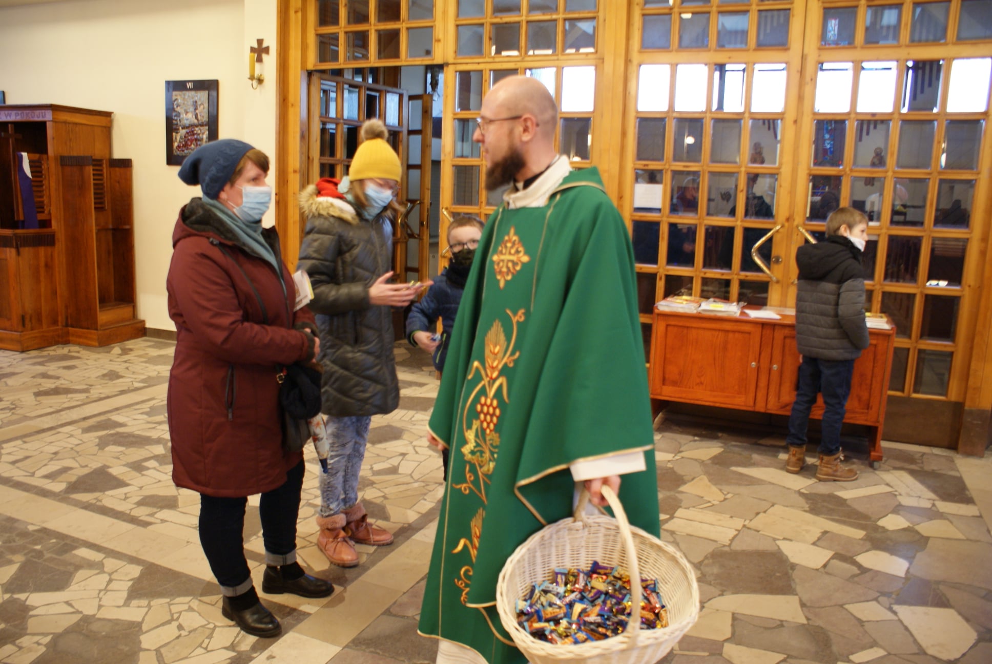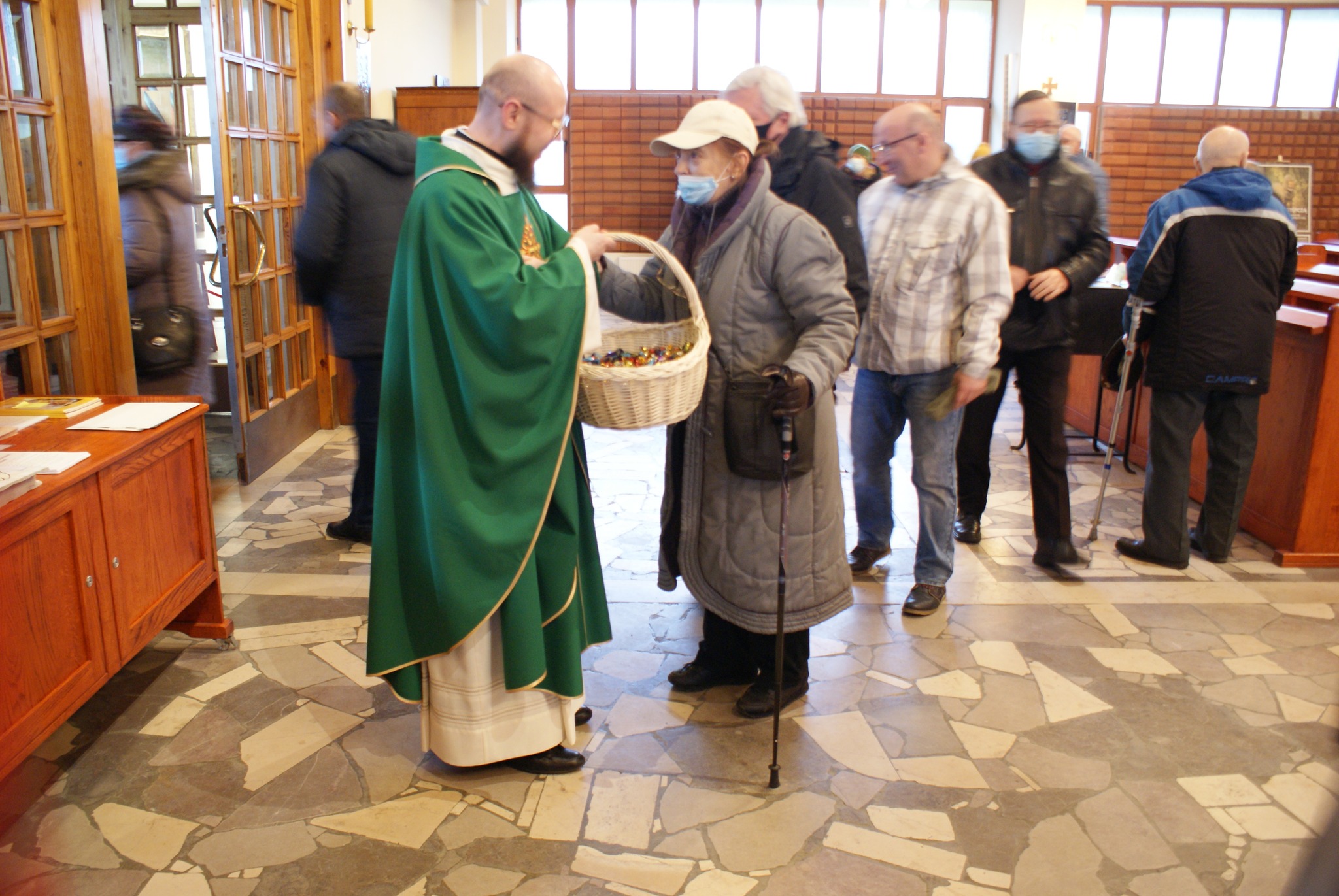 Ks. Damian Czerwiński w niedzielę obchodził imieniny, a w sobotę swoje 36. urodziny. Msza Św. z udziałem i przewodniczeniem Solenizanta i Jubilata została odprawiona wczoraj o godz. 10.00. Po komunii św. przyszedł tradycyjny moment życzeń. Życzenia i wyrazy wdzięczności skierował ks. Proboszcz oraz przedstawiciele grup parafialnych, ministranci i schola parafialna. W swoim słowie Solenizant podziękował serdecznie za miłe słowa i życzenia skierowane do niego osobiście, telefonicznie oraz przez FB. Po Mszy Św. Ksiądz Damian częstował zebranych wiernych pysznymi cukierkami.