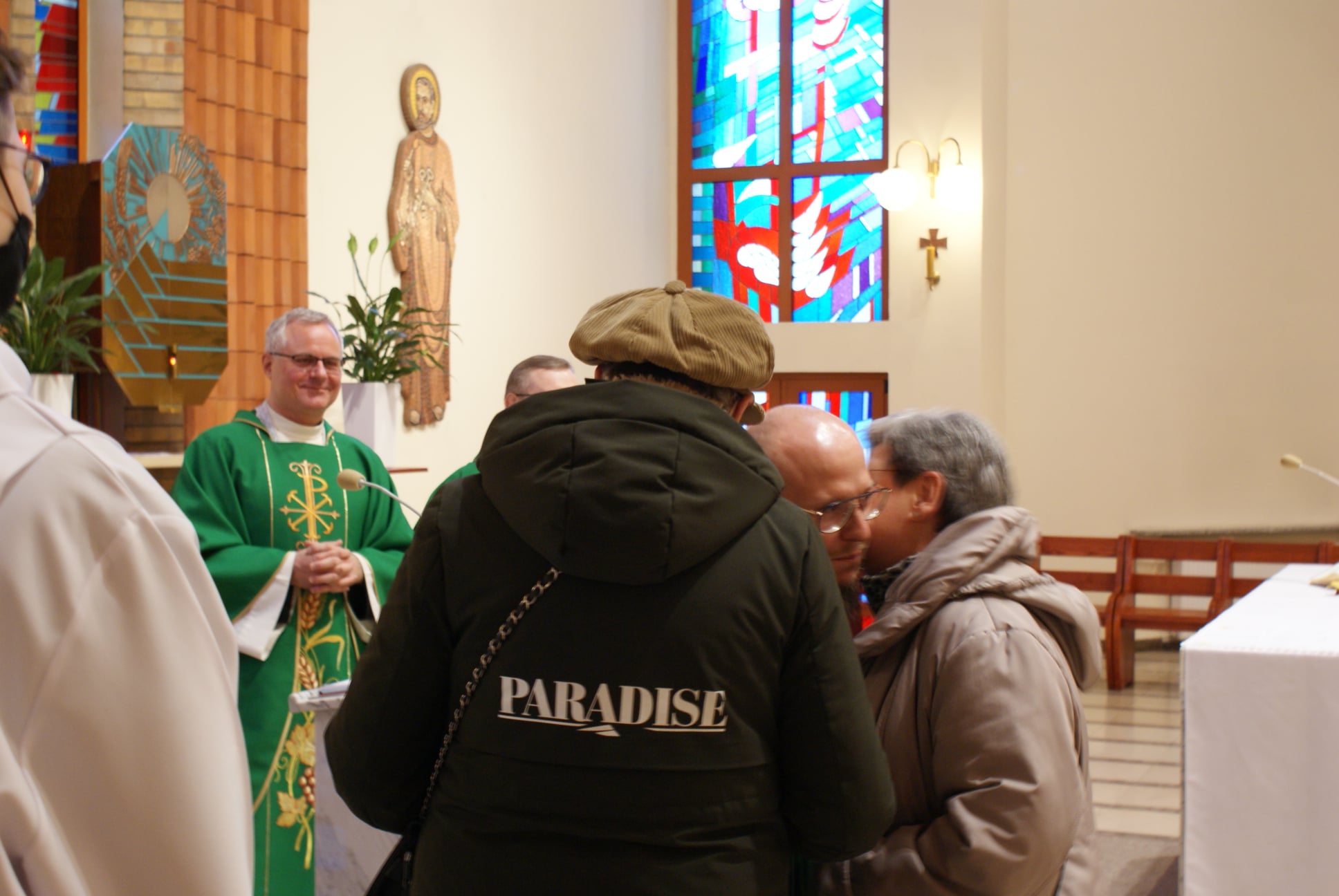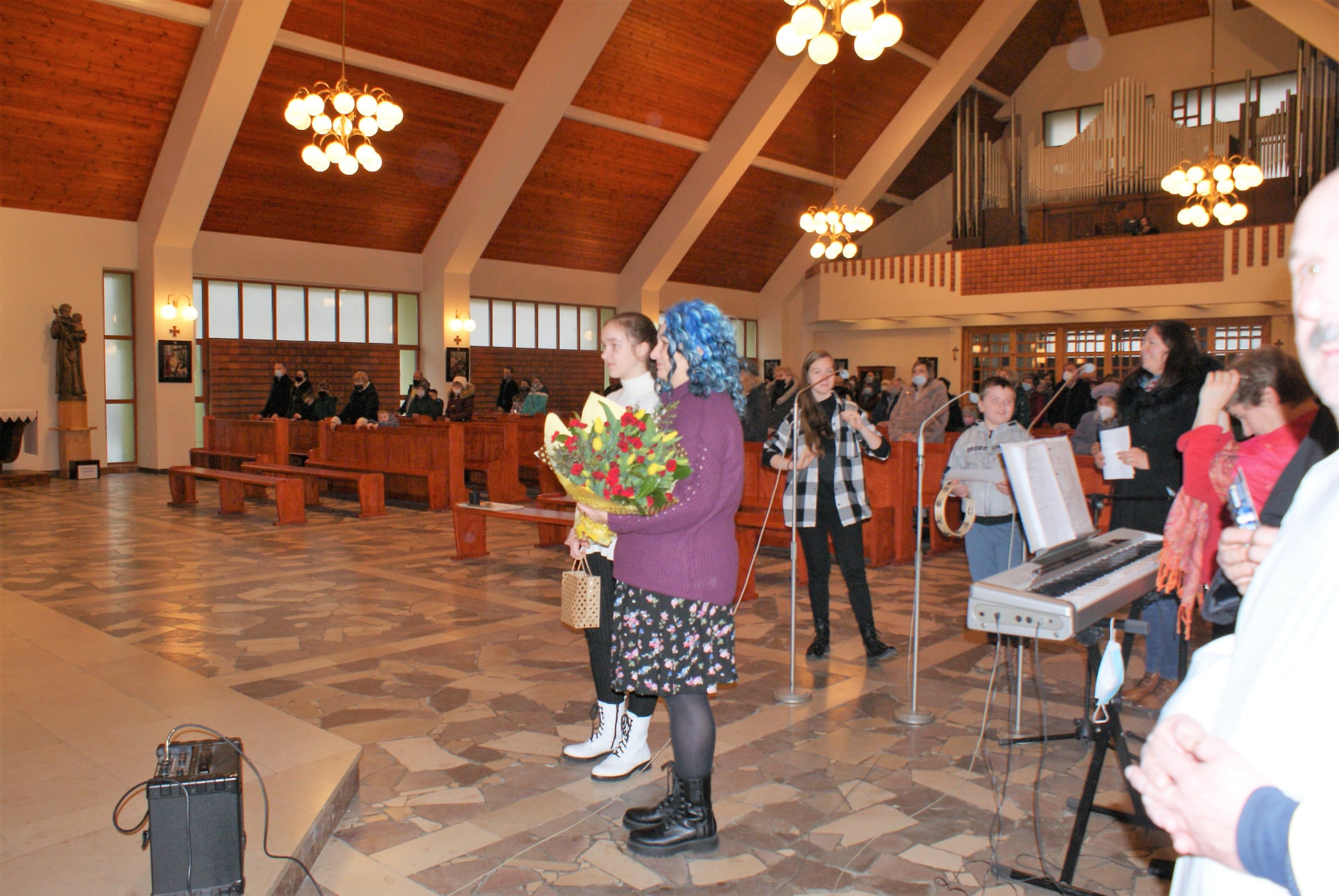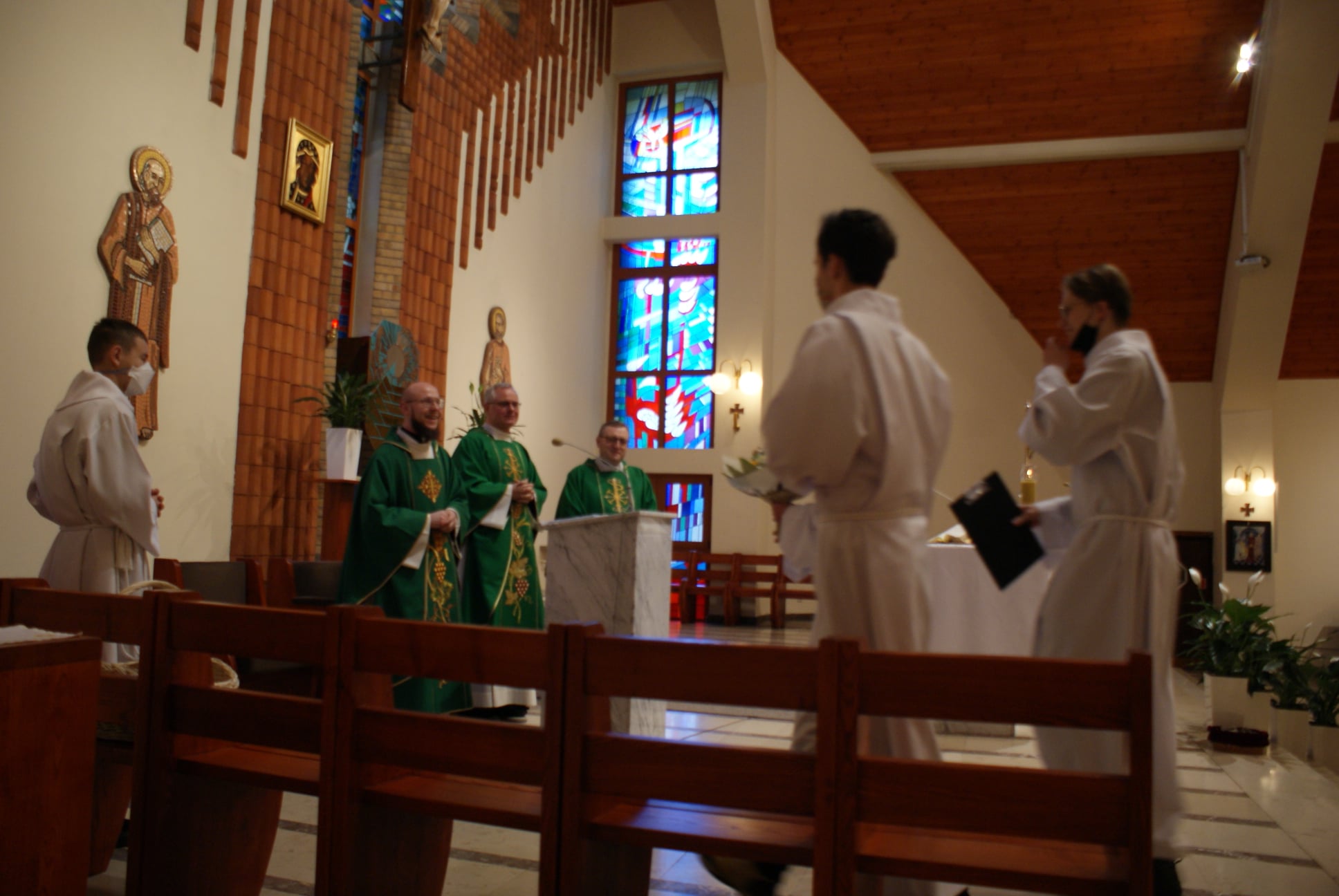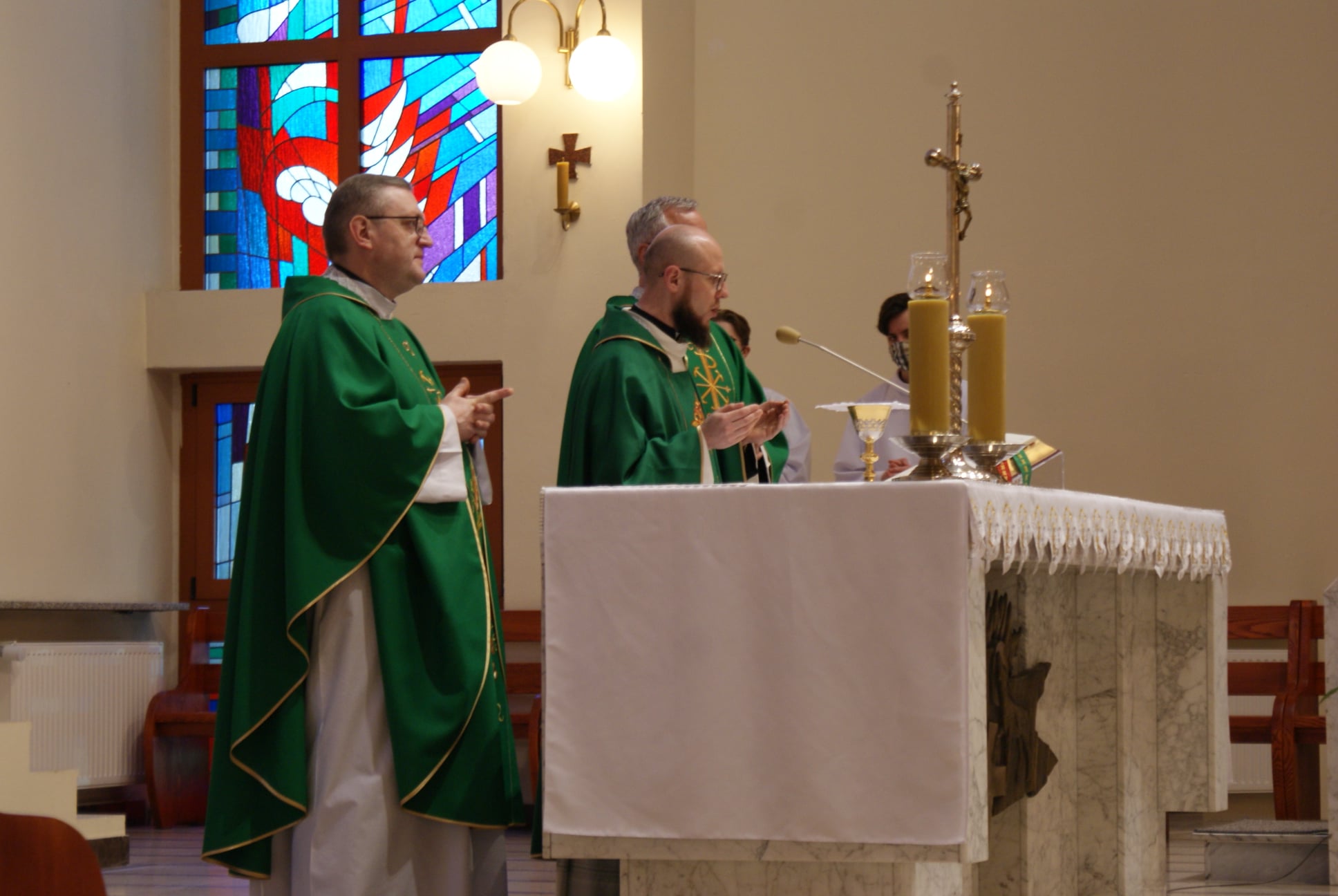 Ks. Damian Czerwiński w niedzielę obchodził imieniny, a w sobotę swoje 36. urodziny. Msza Św. z udziałem i przewodniczeniem Solenizanta i Jubilata została odprawiona wczoraj o godz. 10.00. Po komunii św. przyszedł tradycyjny moment życzeń. Życzenia i wyrazy wdzięczności skierował ks. Proboszcz oraz przedstawiciele grup parafialnych, ministranci i schola parafialna. W swoim słowie Solenizant podziękował serdecznie za miłe słowa i życzenia skierowane do niego osobiście, telefonicznie oraz przez FB. Po Mszy Św. Ksiądz Damian częstował zebranych wiernych pysznymi cukierkami.