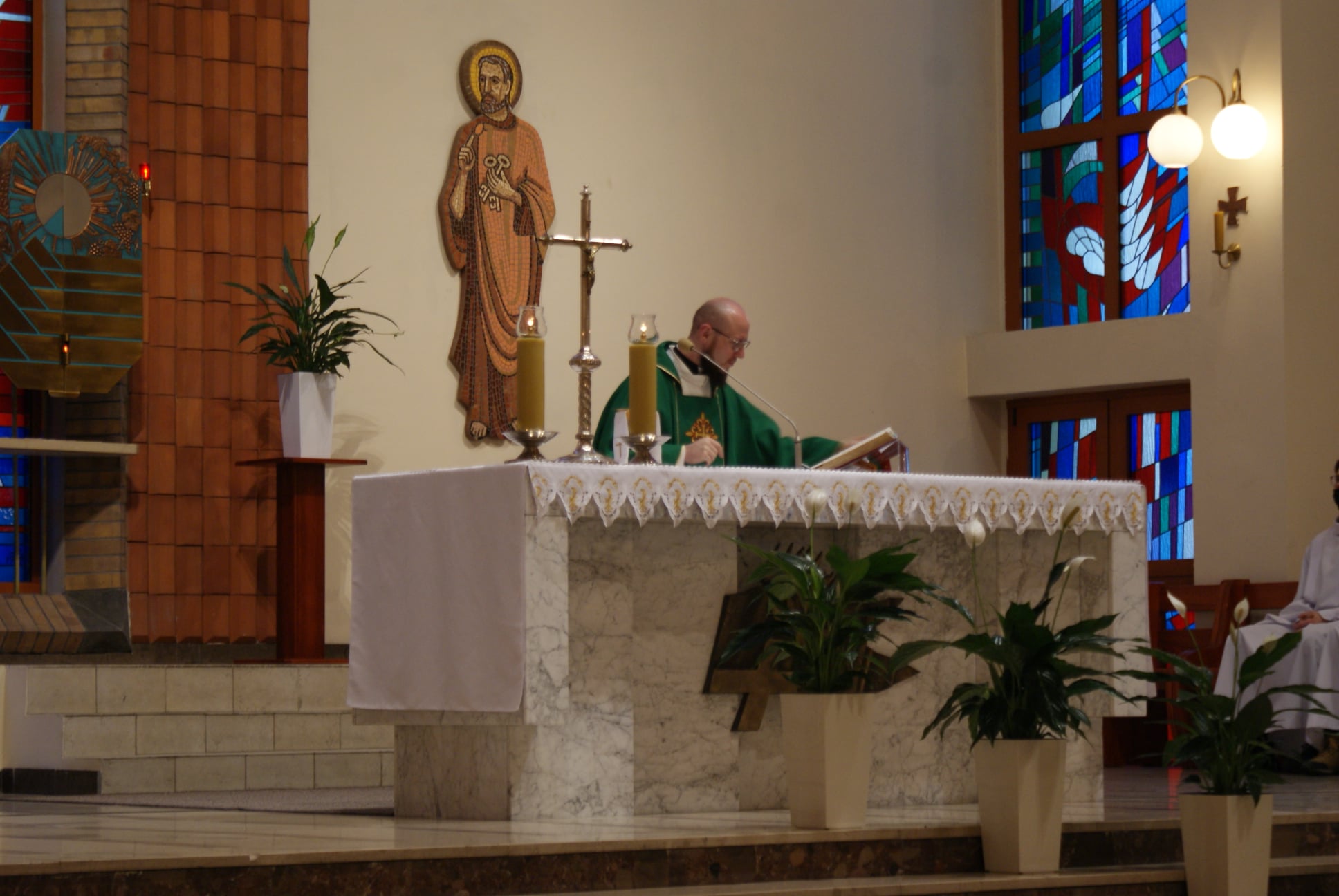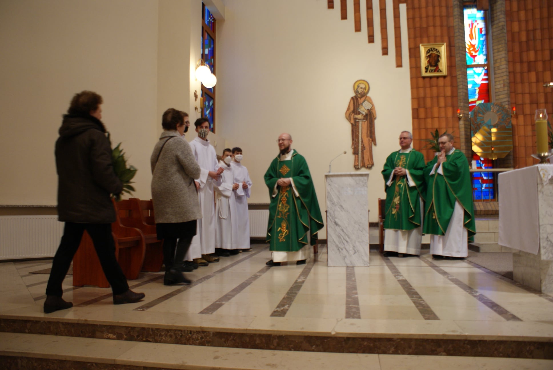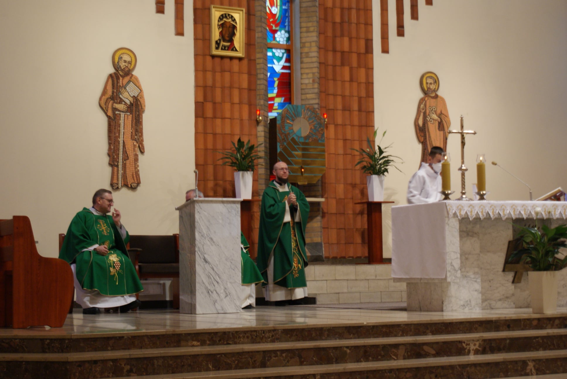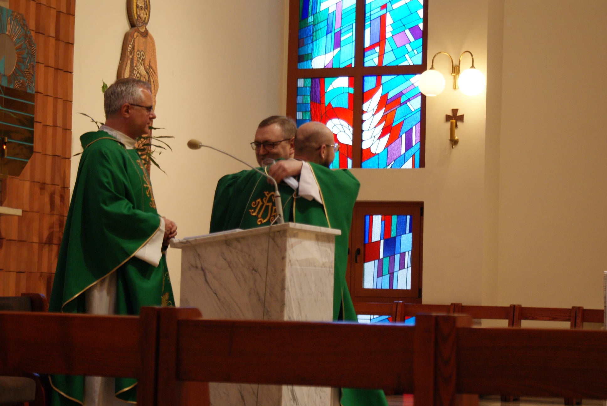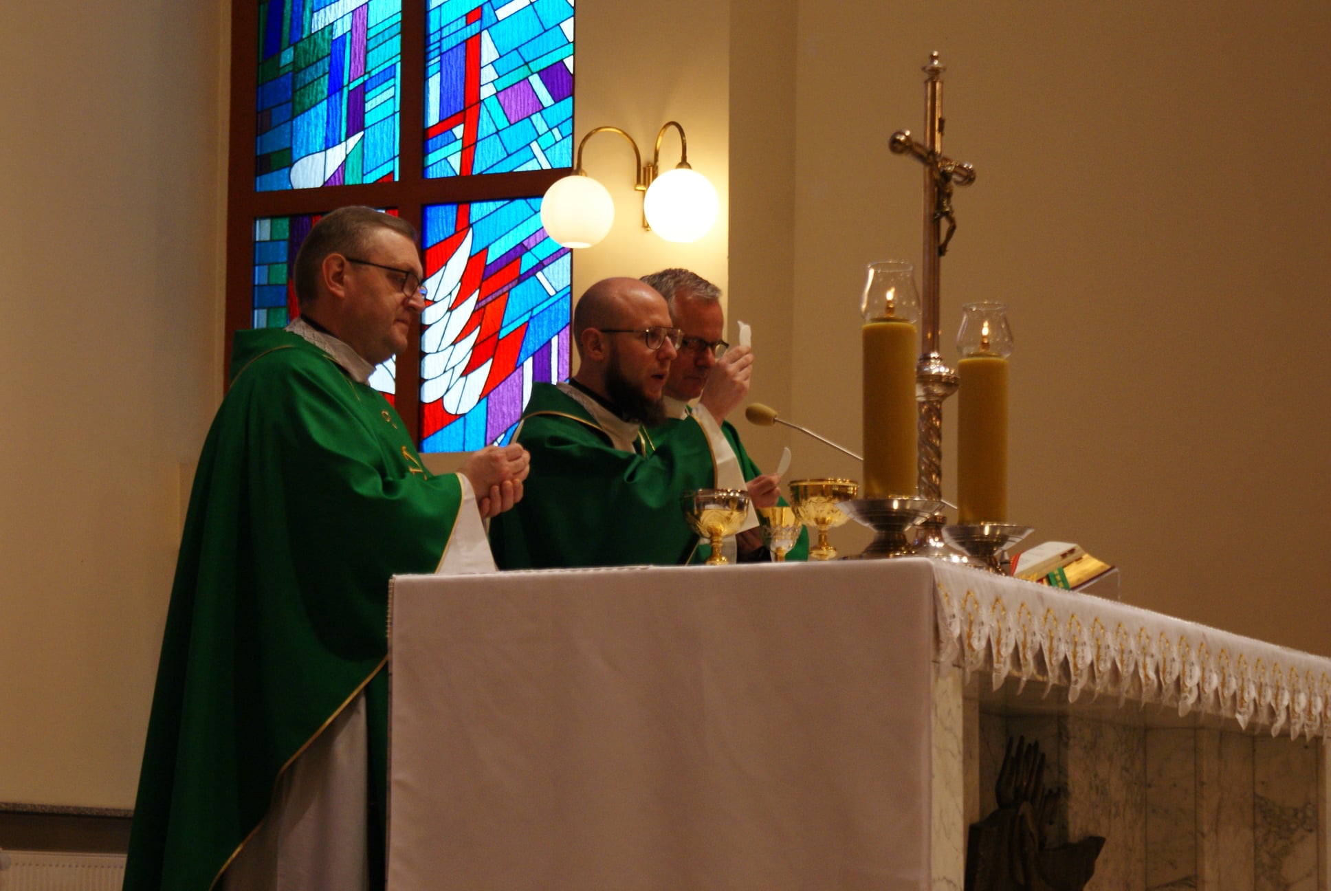 Ks. Damian Czerwiński w niedzielę obchodził imieniny, a w sobotę swoje 36. urodziny. Msza Św. z udziałem i przewodniczeniem Solenizanta i Jubilata została odprawiona wczoraj o godz. 10.00. Po komunii św. przyszedł tradycyjny moment życzeń. Życzenia i wyrazy wdzięczności skierował ks. Proboszcz oraz przedstawiciele grup parafialnych, ministranci i schola parafialna. W swoim słowie Solenizant podziękował serdecznie za miłe słowa i życzenia skierowane do niego osobiście, telefonicznie oraz przez FB. Po Mszy Św. Ksiądz Damian częstował zebranych wiernych pysznymi cukierkami.