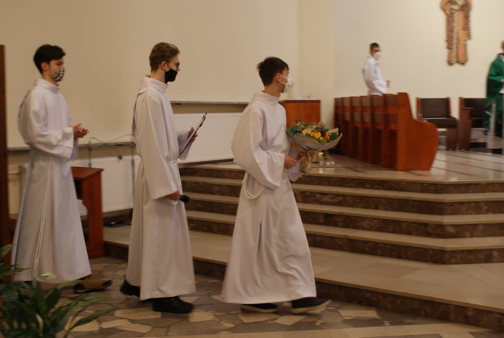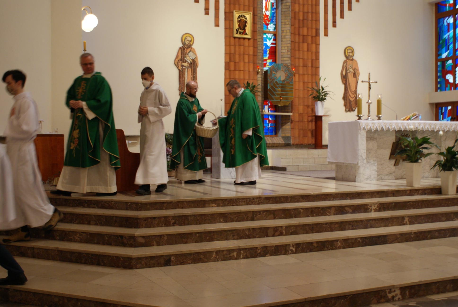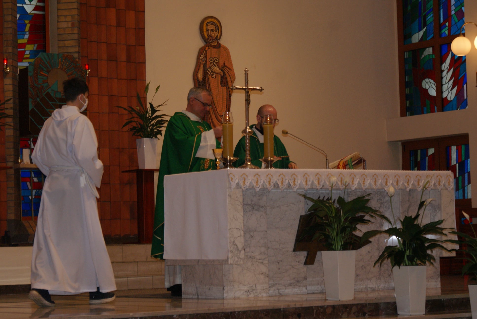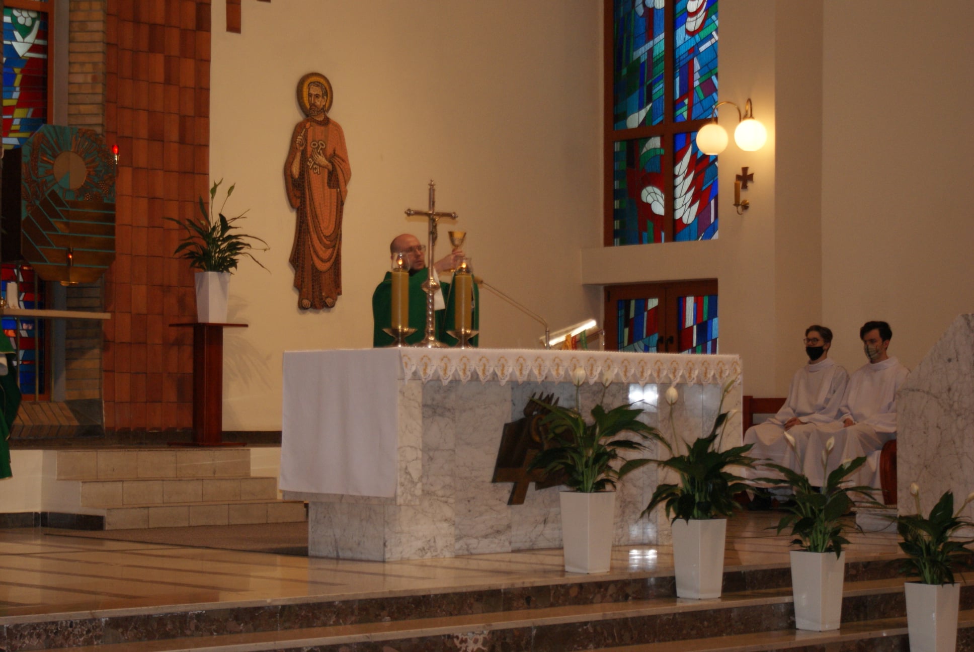 Ks. Damian Czerwiński w niedzielę obchodził imieniny, a w sobotę swoje 36. urodziny. Msza Św. z udziałem i przewodniczeniem Solenizanta i Jubilata została odprawiona wczoraj o godz. 10.00. Po komunii św. przyszedł tradycyjny moment życzeń. Życzenia i wyrazy wdzięczności skierował ks. Proboszcz oraz przedstawiciele grup parafialnych, ministranci i schola parafialna. W swoim słowie Solenizant podziękował serdecznie za miłe słowa i życzenia skierowane do niego osobiście, telefonicznie oraz przez FB. Po Mszy Św. Ksiądz Damian częstował zebranych wiernych pysznymi cukierkami.