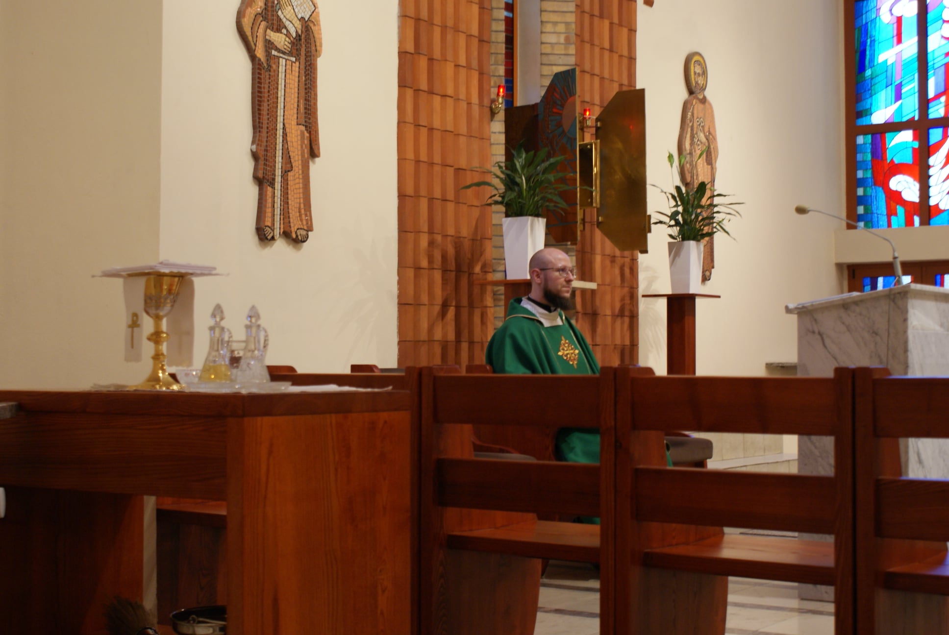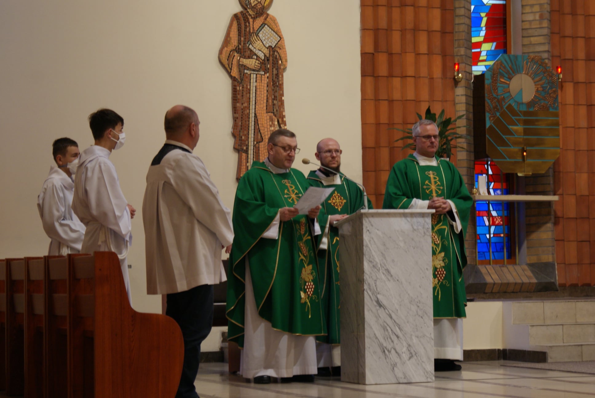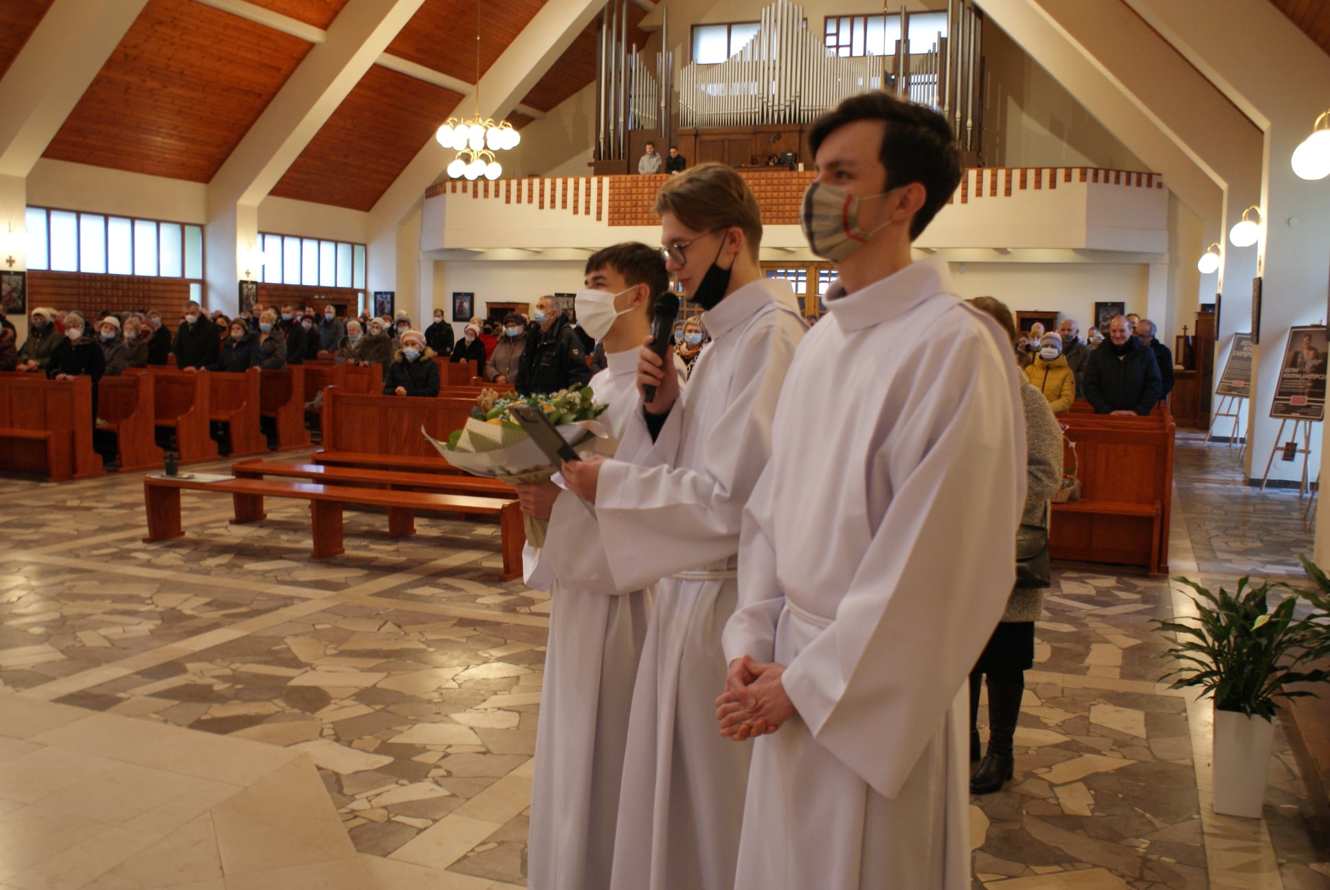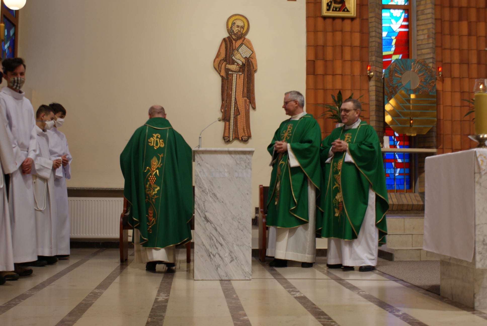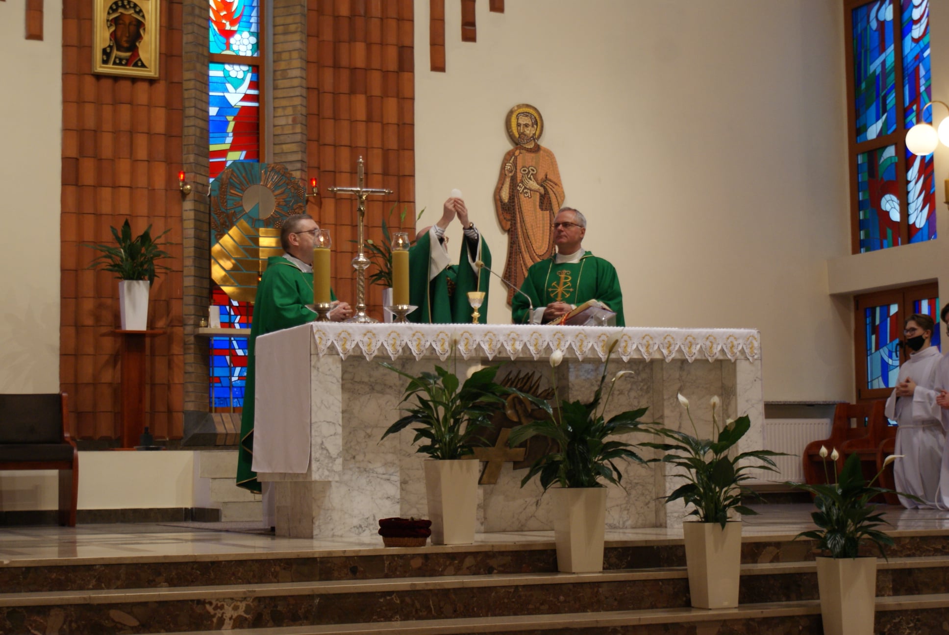 Ks. Damian Czerwiński w niedzielę obchodził imieniny, a w sobotę swoje 36. urodziny. Msza Św. z udziałem i przewodniczeniem Solenizanta i Jubilata została odprawiona wczoraj o godz. 10.00. Po komunii św. przyszedł tradycyjny moment życzeń. Życzenia i wyrazy wdzięczności skierował ks. Proboszcz oraz przedstawiciele grup parafialnych, ministranci i schola parafialna. W swoim słowie Solenizant podziękował serdecznie za miłe słowa i życzenia skierowane do niego osobiście, telefonicznie oraz przez FB. Po Mszy Św. Ksiądz Damian częstował zebranych wiernych pysznymi cukierkami.