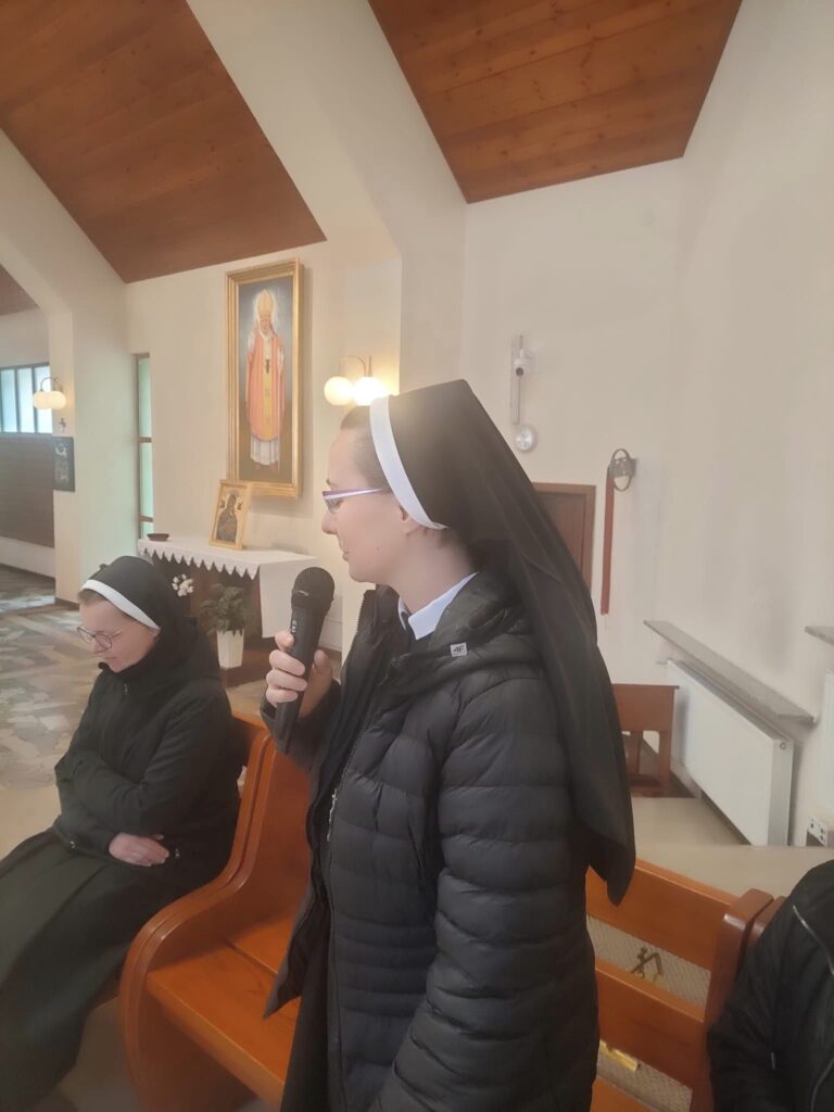 Wczoraj odwiedziły nas Siostry Antonianki, które mówiły o swojej pracy w Domu Samotnej Matki. Podczas Mszy Świętej o godzinie 13.00 modliliśmy się o poszanowanie życia ludzkiego. Ojciec Benedykt z Ukrainy opowiedział o sytuacji ludzi w Ukrainie. Prosił o modlitwę o pokój.