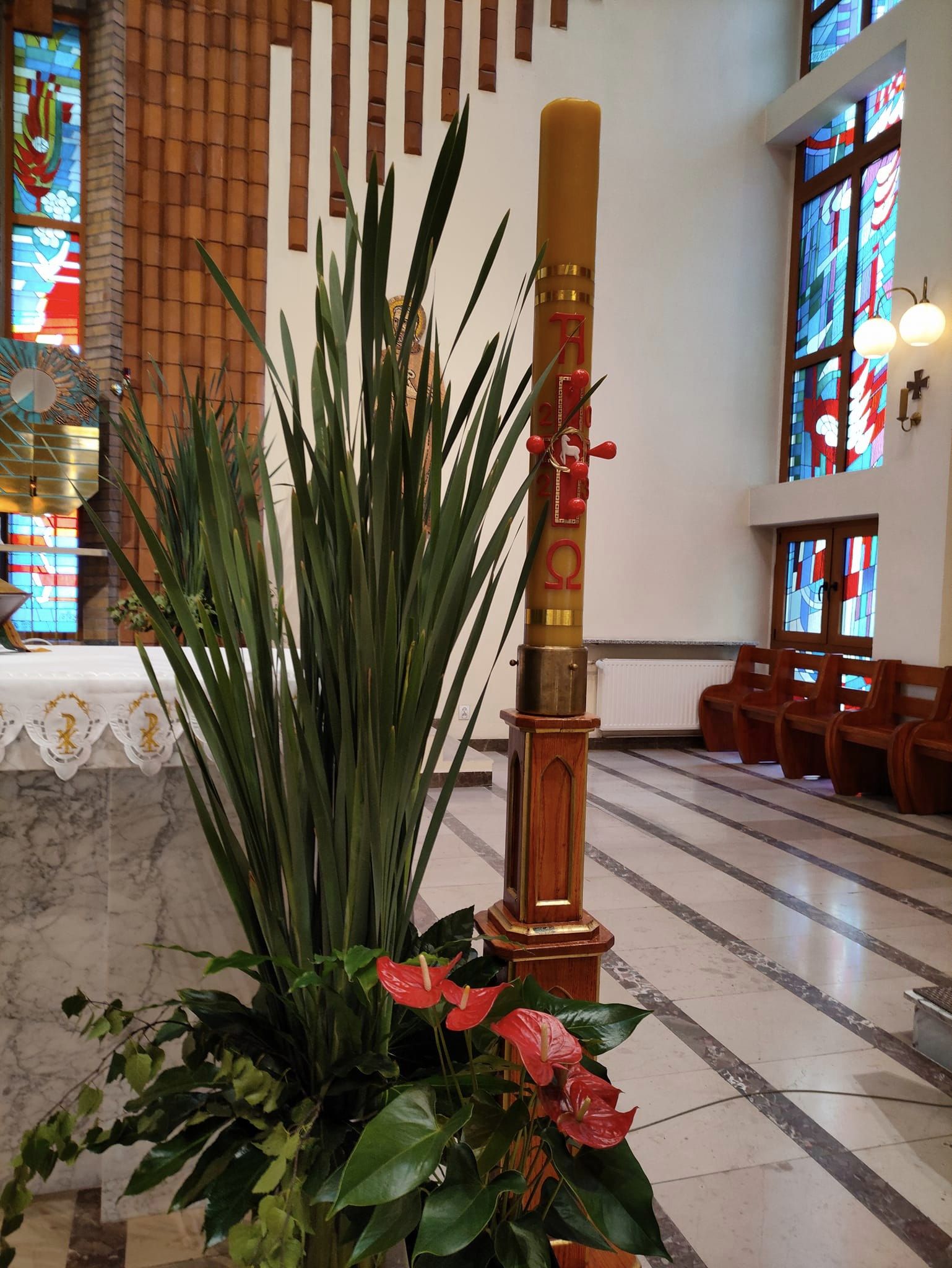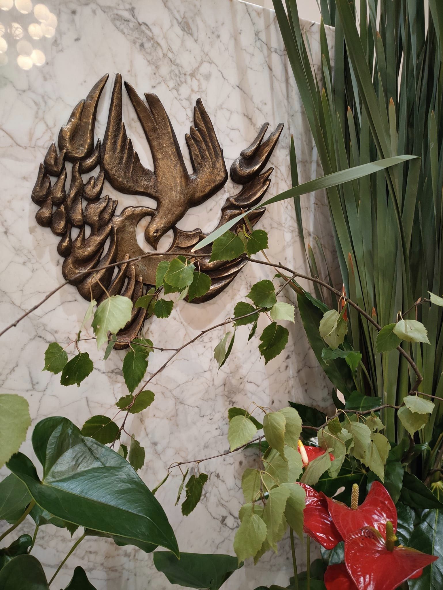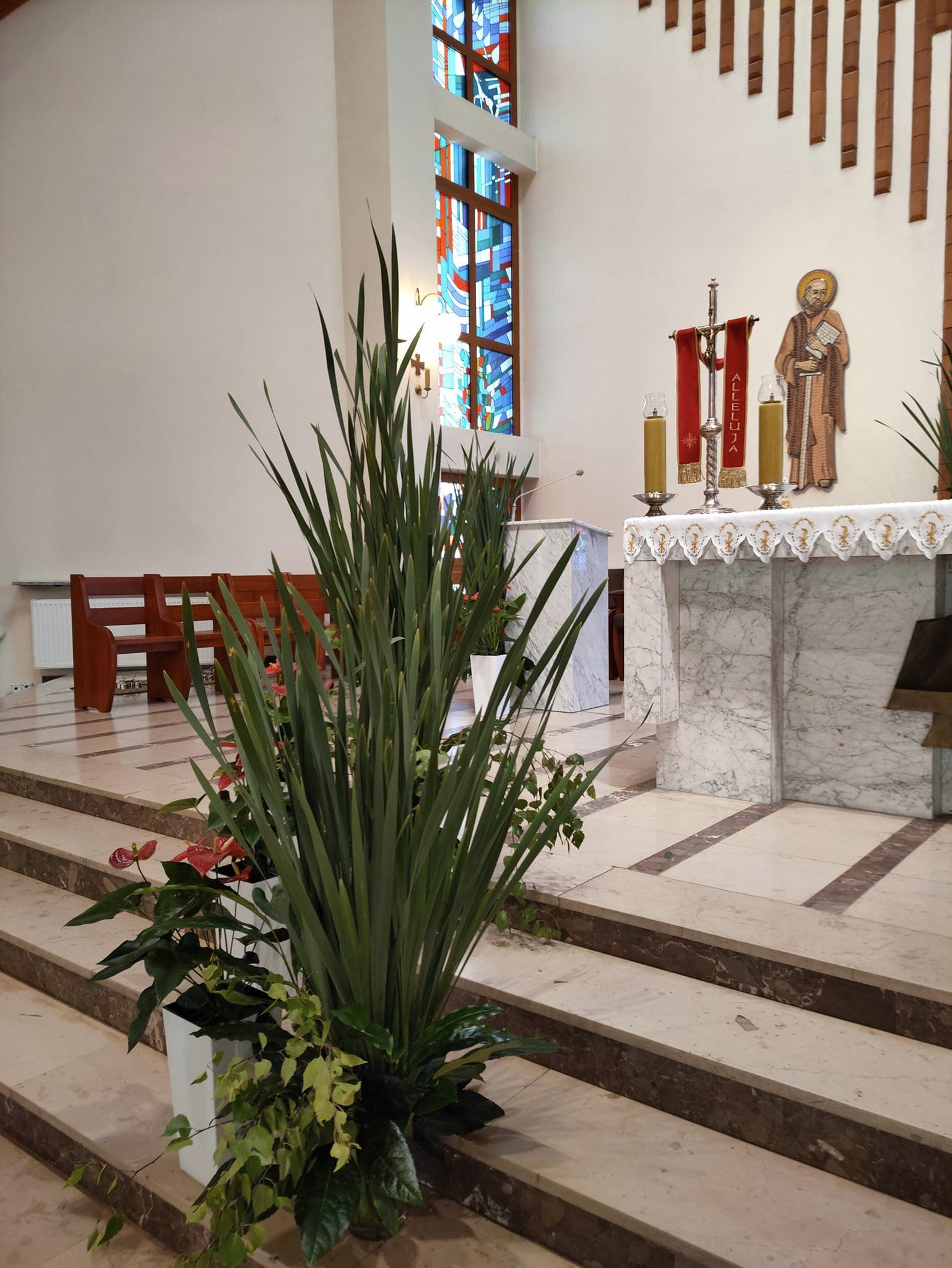 Dekoracja w naszym kościele na Zesłanie Ducha Świętego 27 maja 2023 Zesłanie Ducha Świętego – dekoracja w naszym kościele. Wydarzenia dekoracje, dekorowanie kościoła, tatarak, Zesłanie Ducha Świętego