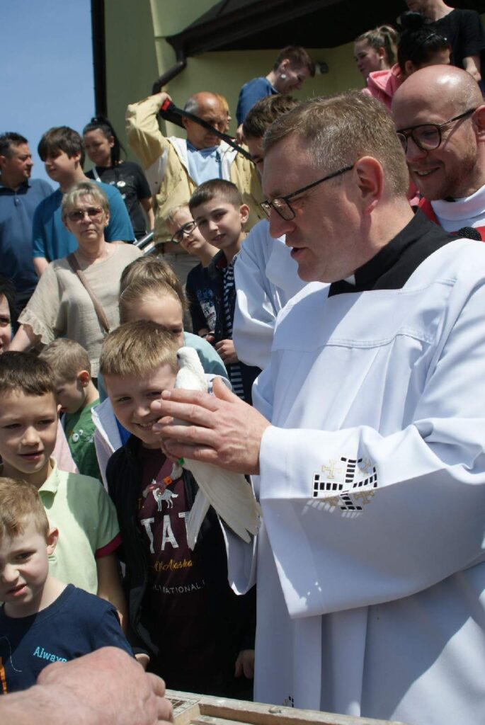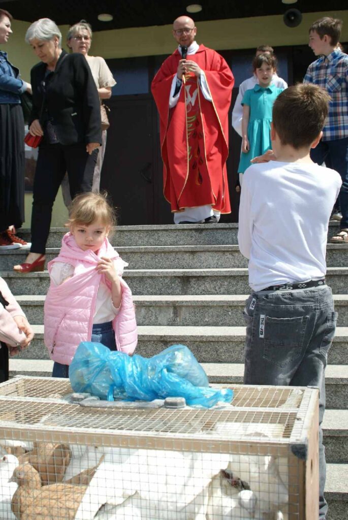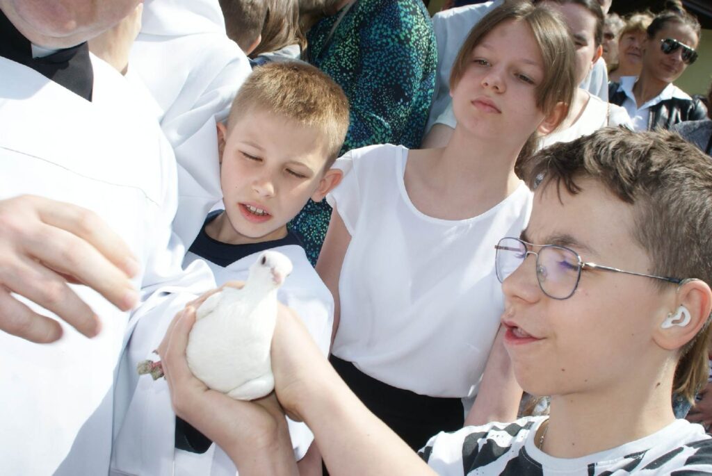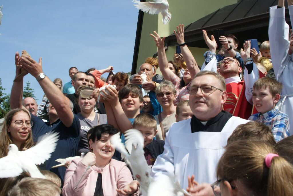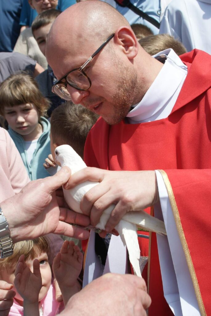 W Uroczystość Pięćdziesiątnicy po Mszy Św. o godzinie 11.30 wypuściliśmy w niebo gołębie pocztowe, które bardzo szybko wróciły do swojego domu znajdującego się obok kościoła. Gołębica jest symbolem Ducha Świętego, o czym przypomina nam Ewangelia w momencie Chrztu Jezusa. Dziękujemy za wspólnotę modlitwy.