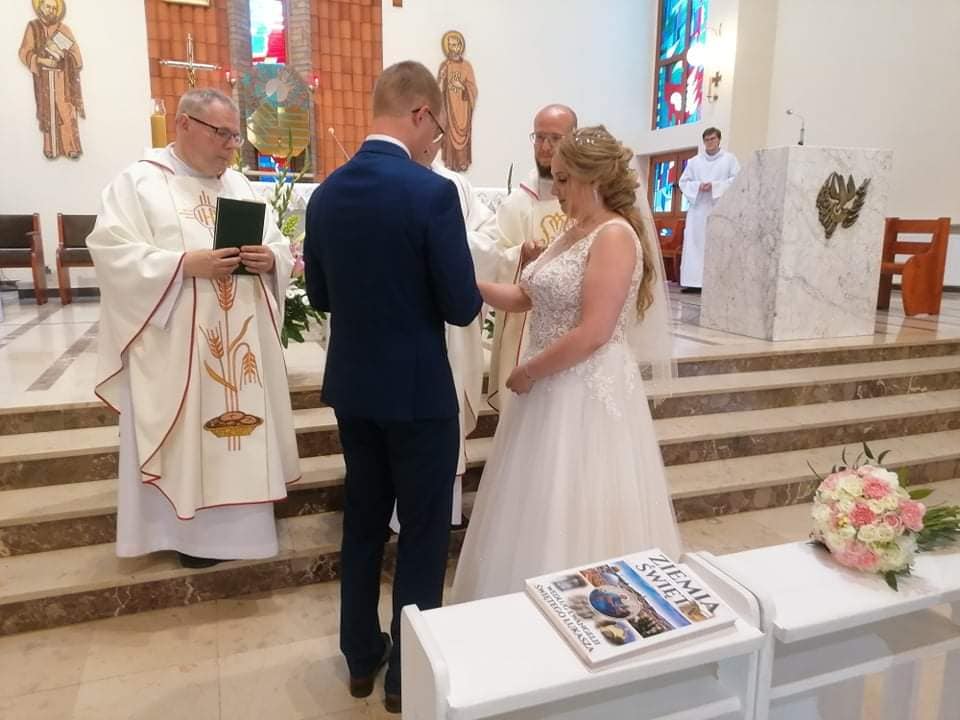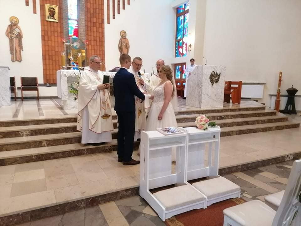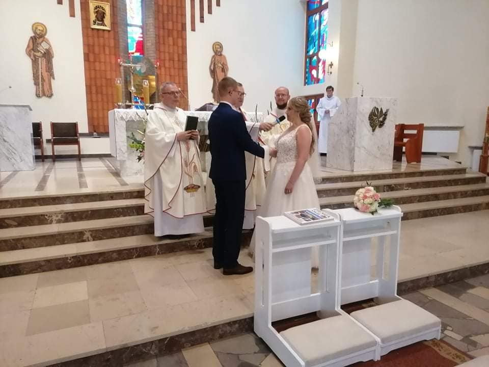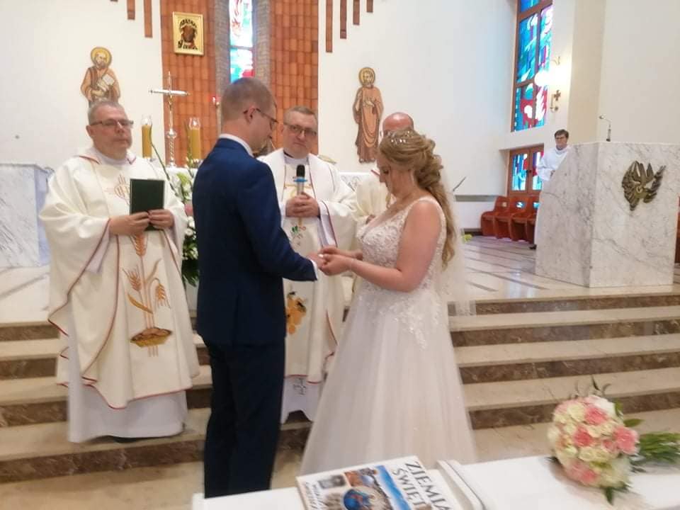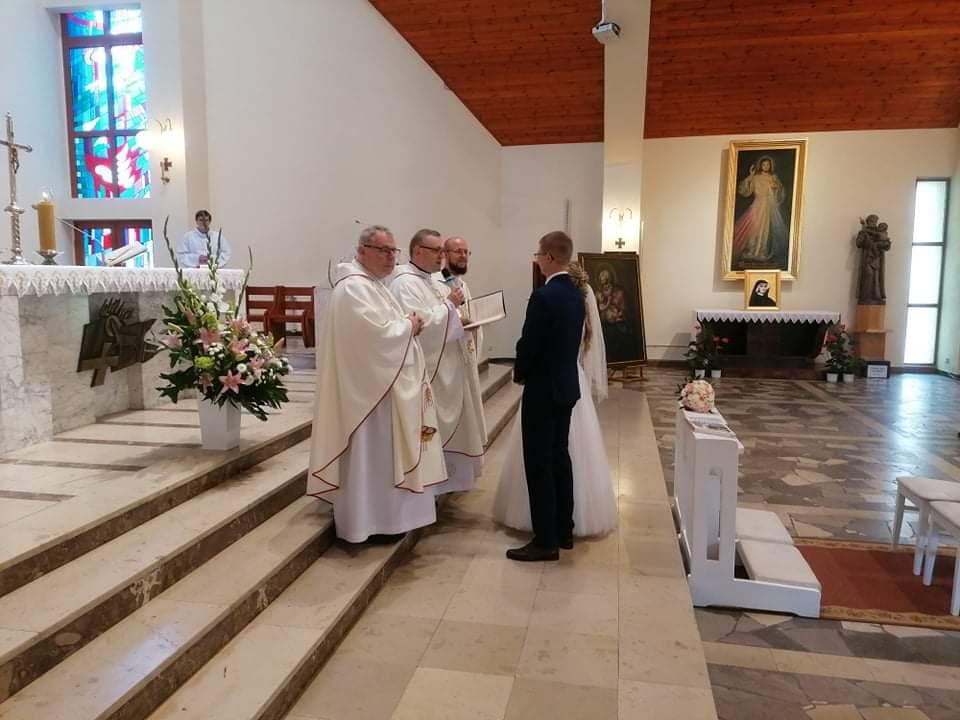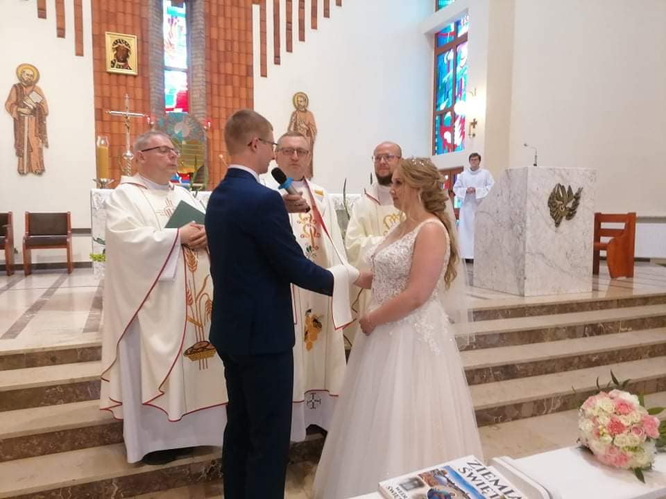 3 lipca o godzinie 17.00 podczas Uroczystej Eucharystii nasz ministrant Mateusz i jego wybranka Paulina wypowiedzieli sakramentalne „Tak”. Nowożeńcom bardzo serdecznie gratulujemy i życzymy wszelkich łask potrzebnych w budowaniu wspólnego życia na fundamencie wiary w Pana Jezusa.